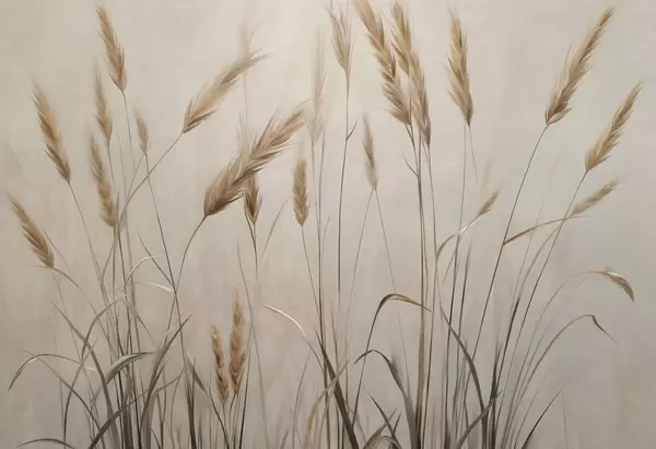 Stenske poslikave Pšenično polje z rumenimi klasji, bež ozadje, naravna svetloba, topli toni, podrobni čopiči Št. w09493