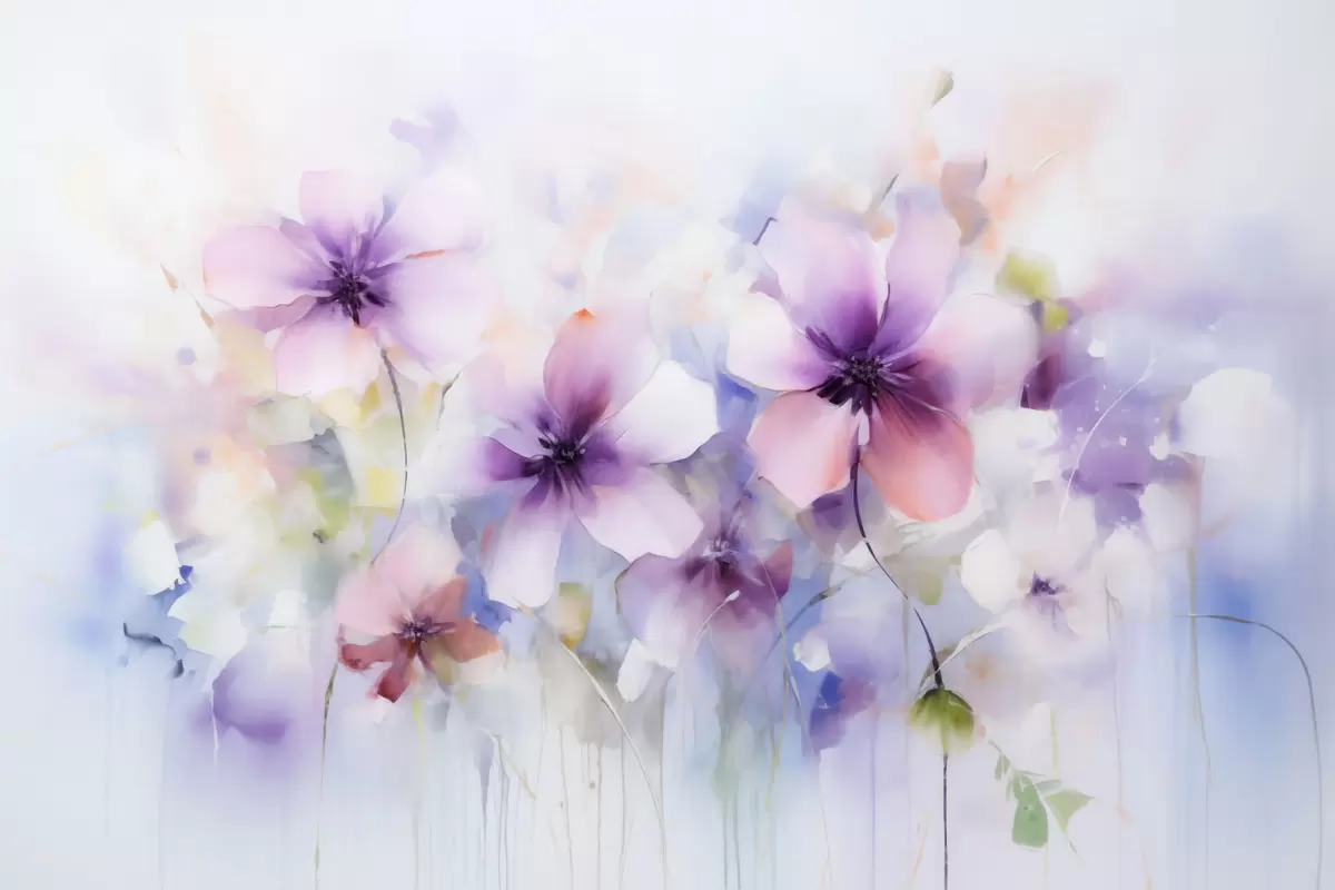 Stenske poslikave Pomladne akvarelne rože v odtenkih rožnate in vijolične barve Št. w09502