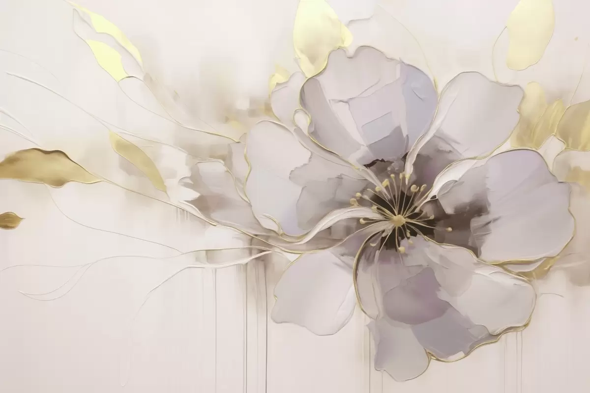 Stenske poslikave Modra cvetlica z rumenimi poudarki v abstraktnem slogu čopiča Št. w09505