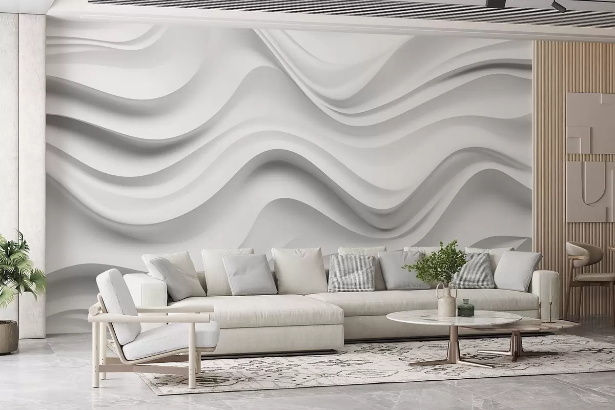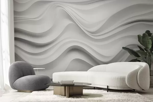 Stenske poslikave Črno-bela abstraktna 3D kompozicija z gladkimi valovi Št. w09506
