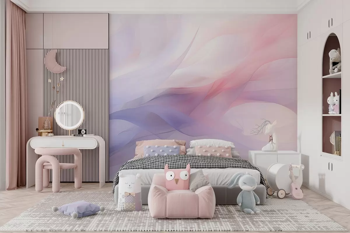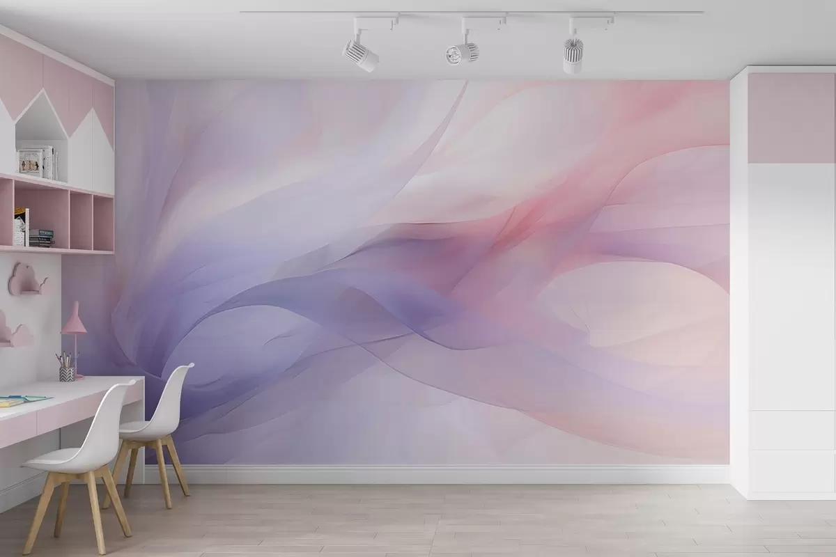Stenske poslikave Mehke abstraktne valove v modrih in rožnatih odtenkih Št. w09508
