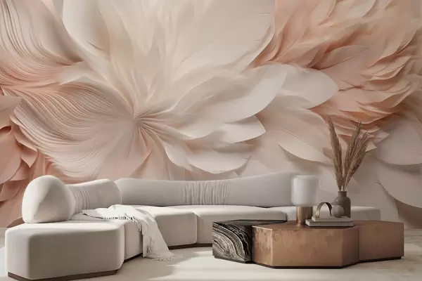 Stenske poslikave Nežna abstraktna peresa v gibanju v bež in krem barvah Št. w09509