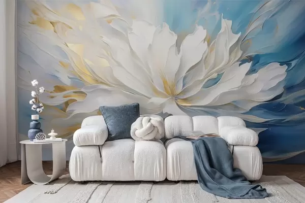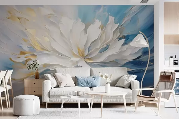 Stenske poslikave Velika bela potonika v slogu oljnega slikarstva na modro-rumeni podlagi Št. w09511