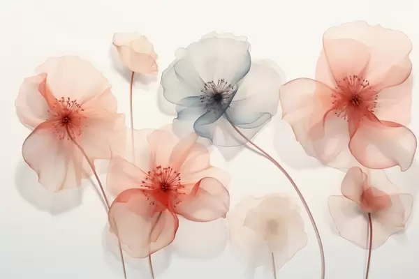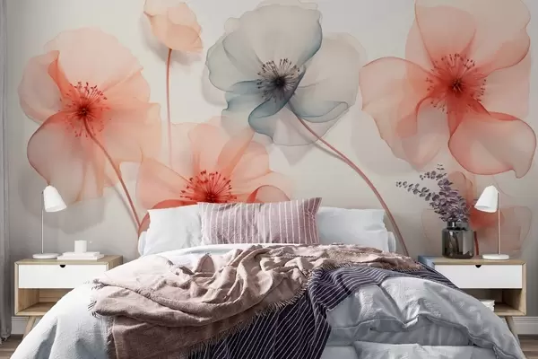 Stenske poslikave Prosojne cvetlice v rdečih in modrih odtenkih Št. w09515