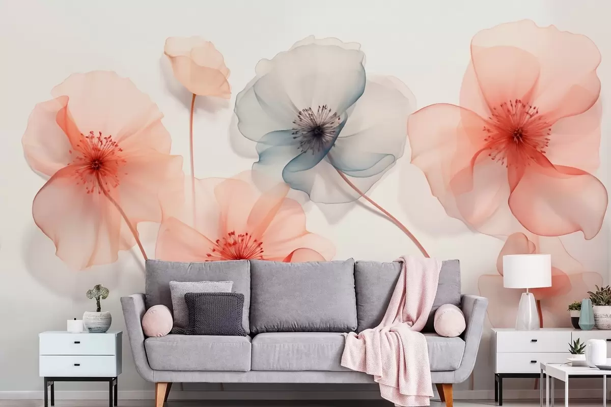 Stenske poslikave Prosojne cvetlice v rdečih in modrih odtenkih Št. w09515