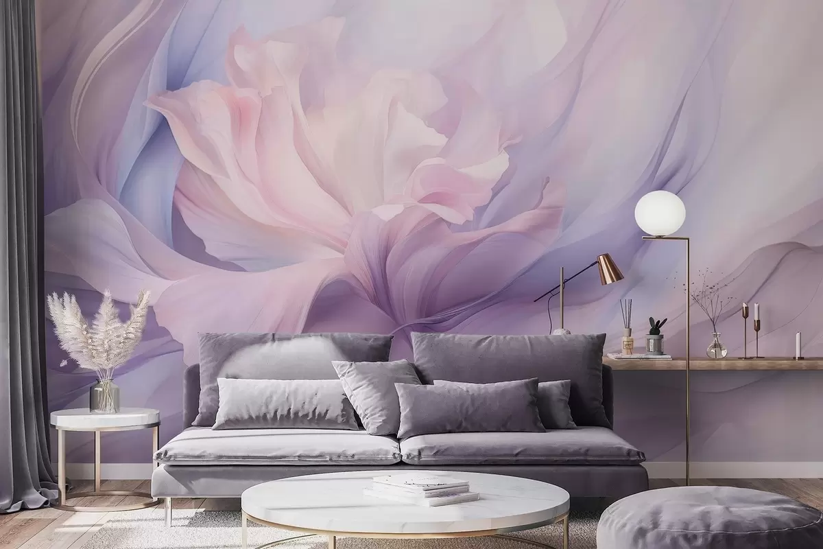Stenske poslikave Nežna meglica cvetnih listov: zračna roža v pastelno lila megli Št. w09517