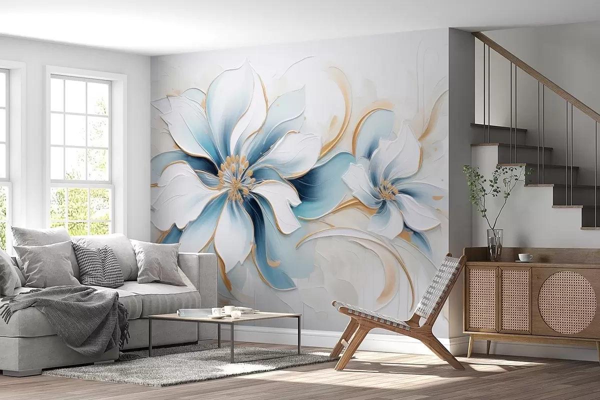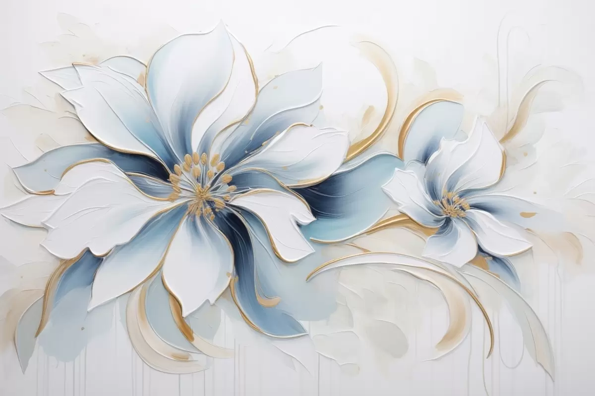 Stenske poslikave Slikarska abstrakcija z modrimi cvetovi v slogu oljnega slikarstva Št. w09524