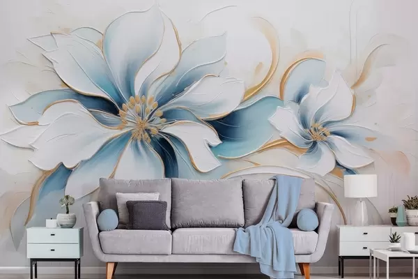 Stenske poslikave Slikarska abstrakcija z modrimi cvetovi v slogu oljnega slikarstva Št. w09524