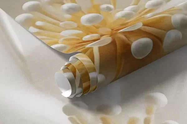 Stenske poslikave Bele cvetlice z biseri, razpršene na belem ozadju, eleganten in minimalističen dizajn, teksturirano Št. w09535