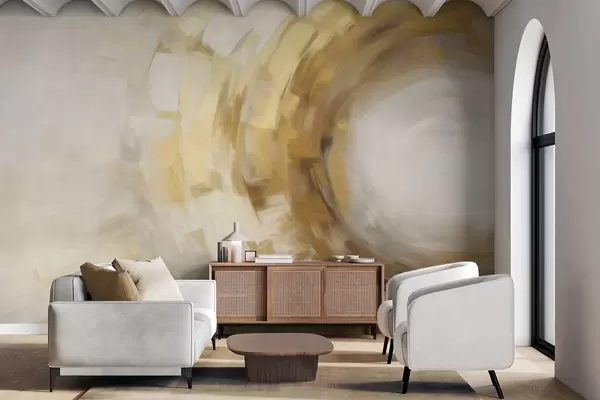 Stenske poslikave Imitiranje abstraktnega slikarstva s krožnimi teksturiranimi potezami čopiča v rumeni in beli barvi, ki ustvarjajo občutek gibanja Št. w09558