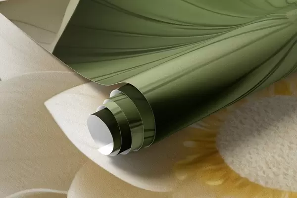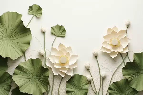 Stenske poslikave 3D lotusovi cvetovi z zelenimi teksturiranimi listi, minimalistični slog Št. w09560