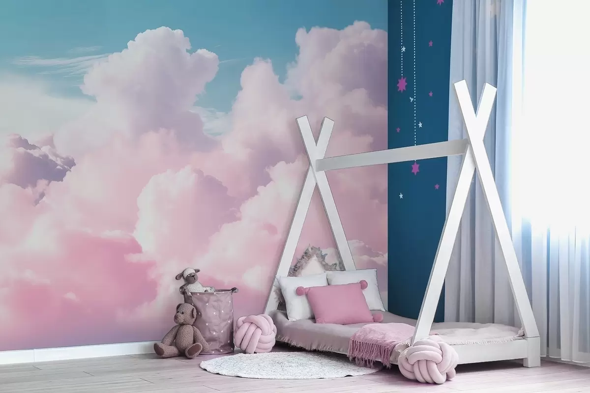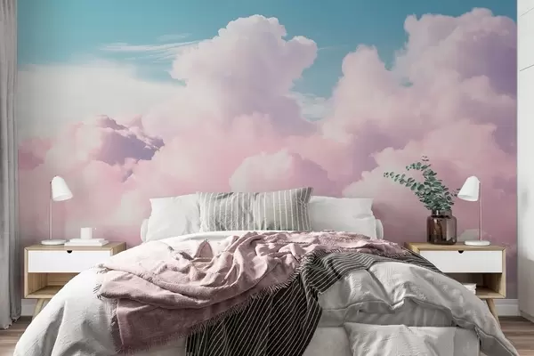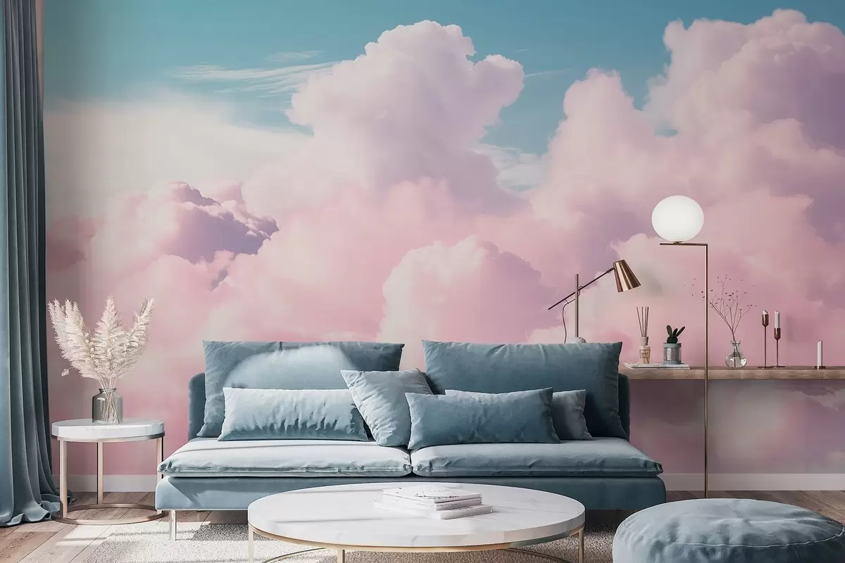 Stenske poslikave Mehki, zračni rožnati oblaki na modrem nebu Št. w09569