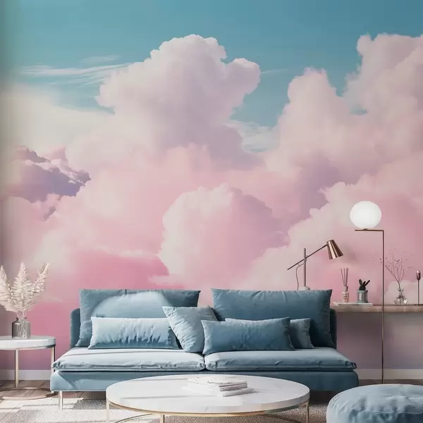 Stenske poslikave Mehki, zračni rožnati oblaki na modrem nebu Št. w09569