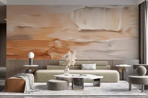 Stenske poslikave Abstraktna imitacija teksturiranih čopičev v toplih zemeljskih odtenkih bež, smetane in rjave barve, sodobna umetnost Št. w09588