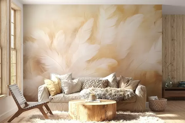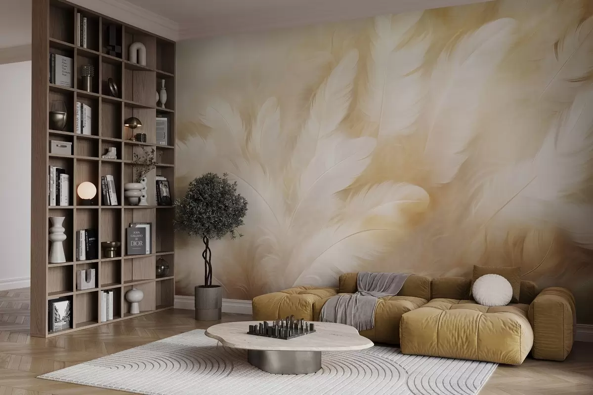 Stenske poslikave Bela in rumena peresa z mehko teksturo Št. w09606