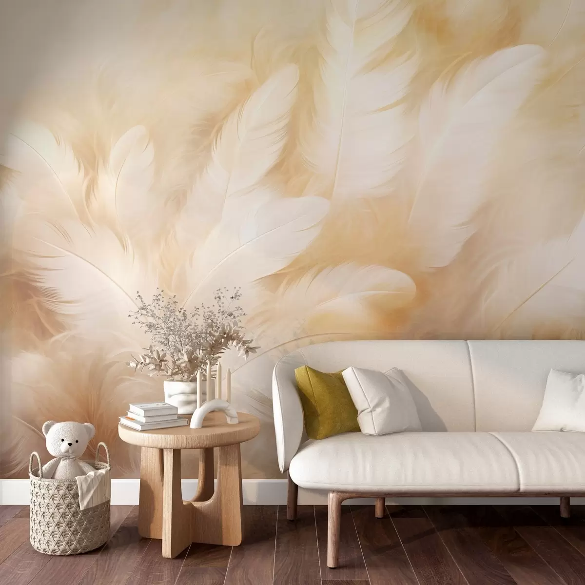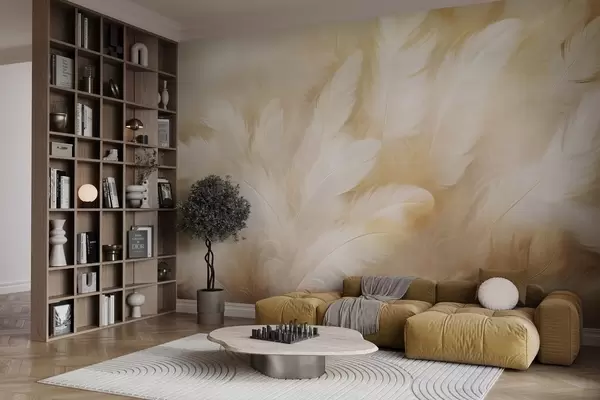 Stenske poslikave Bela in rumena peresa z mehko teksturo Št. w09606