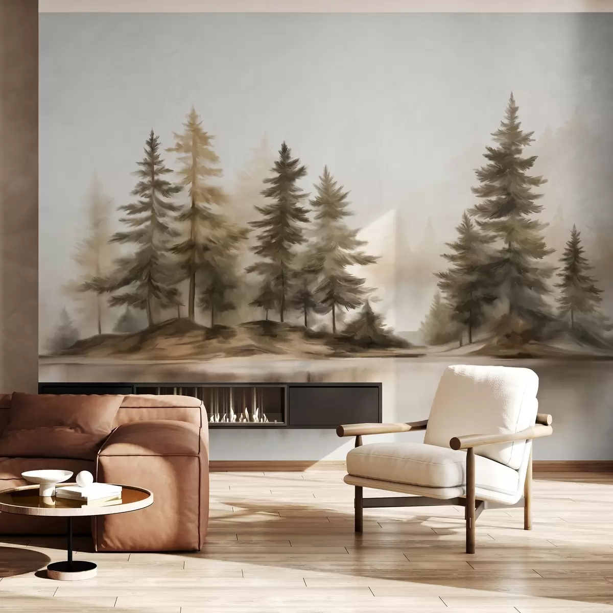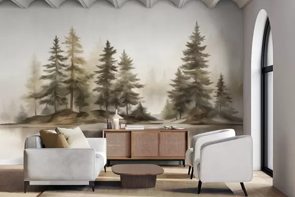 Stenske poslikave Teksturirani megleni gozd z visokimi borovci, slika imitacija Št. w09610