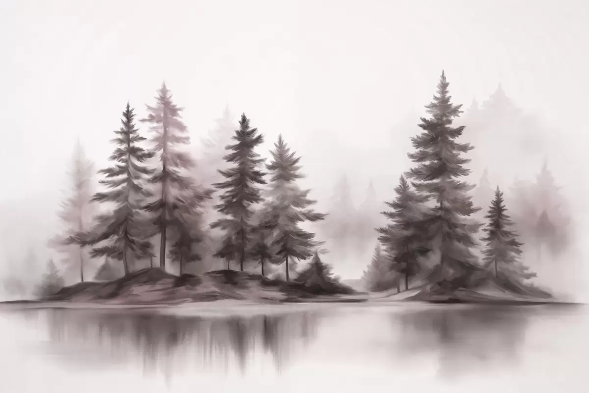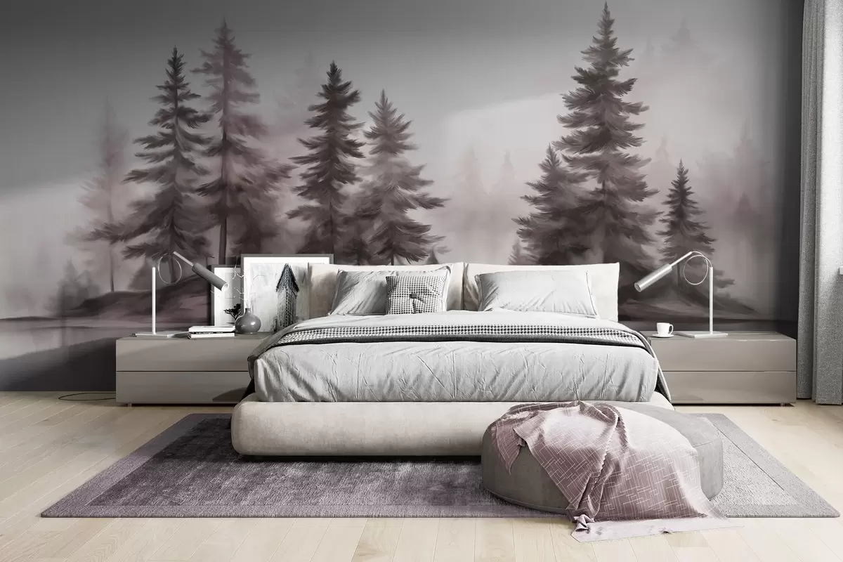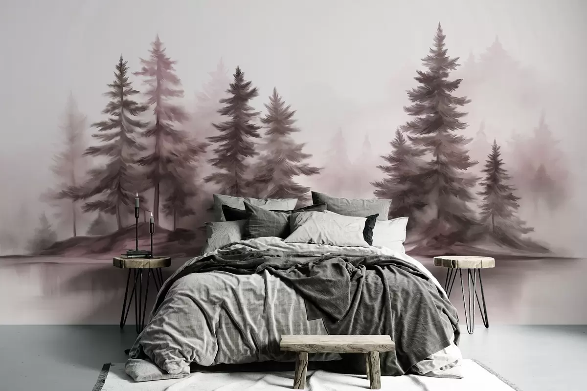 Stenske poslikave Teksturirani megleni gozd z visokimi borovci, slika imitacija Št. w09610v1