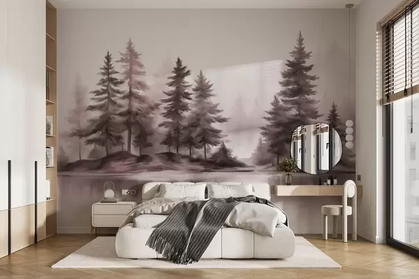 Stenske poslikave Teksturirani megleni gozd z visokimi borovci, slika imitacija Št. w09610v1