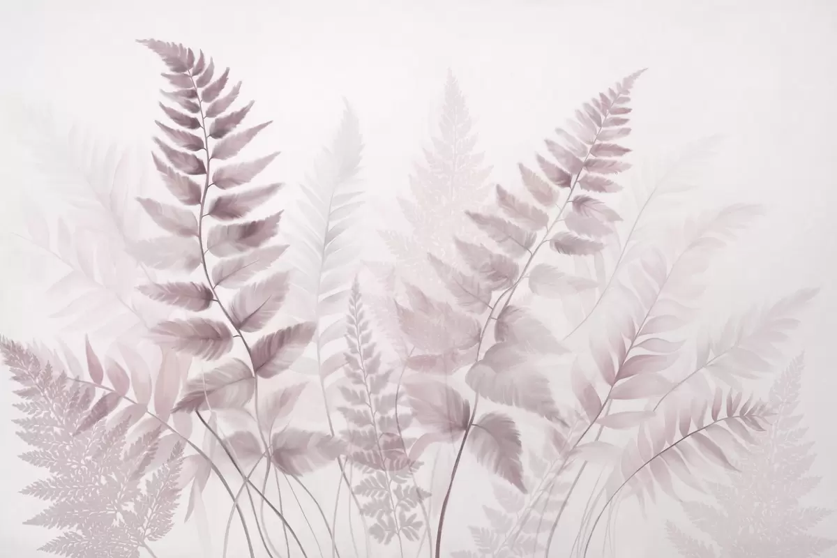 Stenske poslikave Teksturirane posušene lističe praproti v različnih odtenkih roza, z mehkim, svetlim ozadjem v akvarelnem slogu. Št. w09615v2