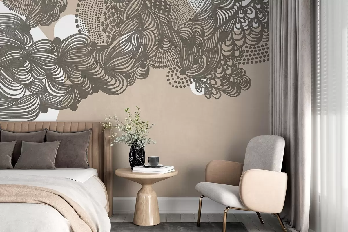 Stenske poslikave Abstraktni teksturirani motiv na bežnem ozadju, z zapletenimi črtami in pikastimi teksturami. Št. w09621