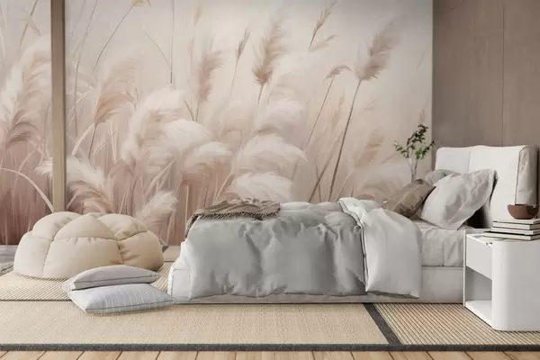Stenske poslikave Visoka, teksturirana trava pampa v mehkih, toplih, nevtralnih tonih, z zamegljenim, svetlim ozadjem Št. w09637