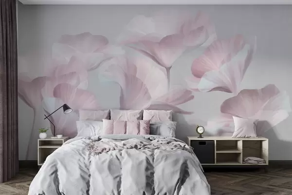 Stenske poslikave Bledo rožnate, teksturirane, prosojne lotusove cvetove z nežnimi cvetnimi listi na nevtralnem sivem ozadju Št. w09640v1