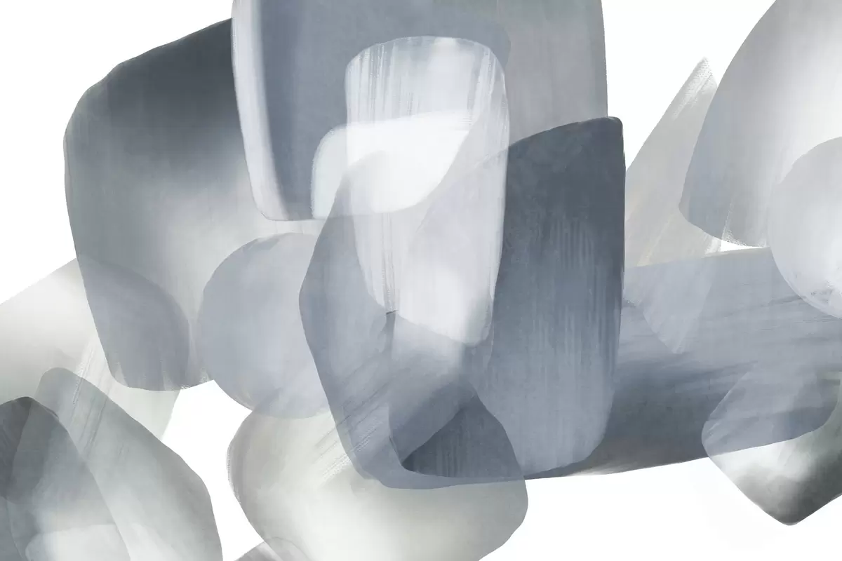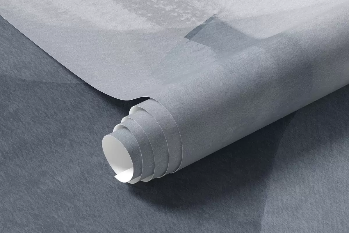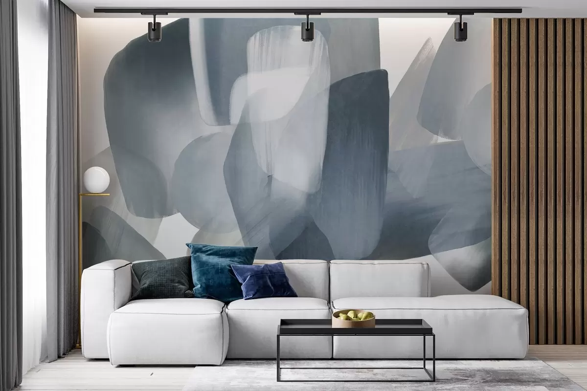 Stenske poslikave Abstraktne teksturirane oblike v umirjenih modrih in sivih barvah, z mehkimi robovi in prekrivajočimi se sloji Št. w09642v1