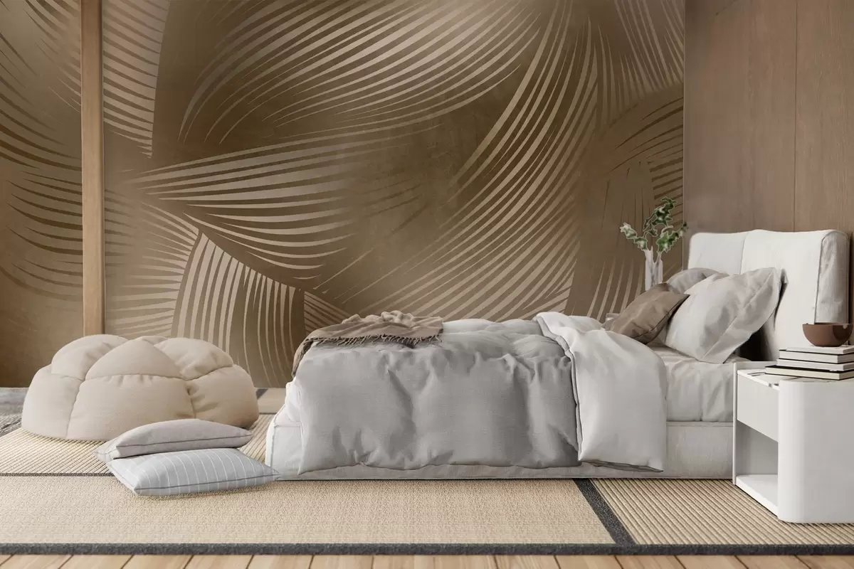 Stenske poslikave Abstraktni tisk tekočih, ukrivljenih črt v odtenkih temno rjave barve, ki ustvarjajo teksturirano, moderno umetnost. Št. w09646