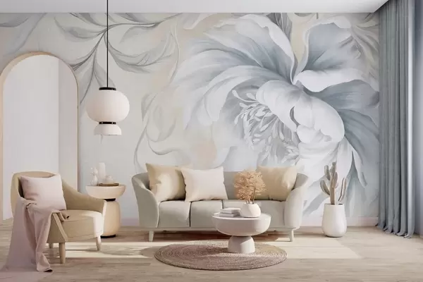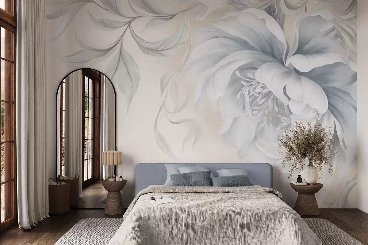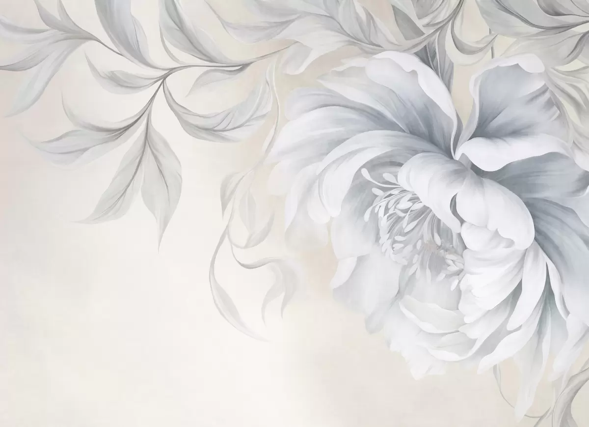Stenske poslikave Velika, reliefna potonika z nežnimi cvetnimi listi in sivimi listi, naslikana v nežnem slogu Št. w09647