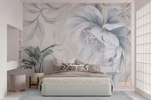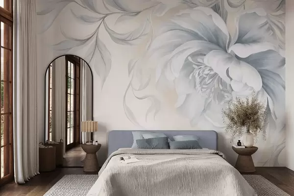 Stenske poslikave Velika, reliefna potonika z nežnimi cvetnimi listi in sivimi listi, naslikana v nežnem slogu Št. w09647