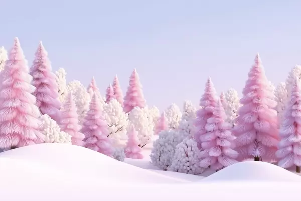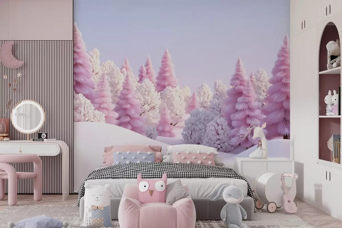 Stenske poslikave Zasnežen zimski gozd v rožnatih odtenkih Št. w09654