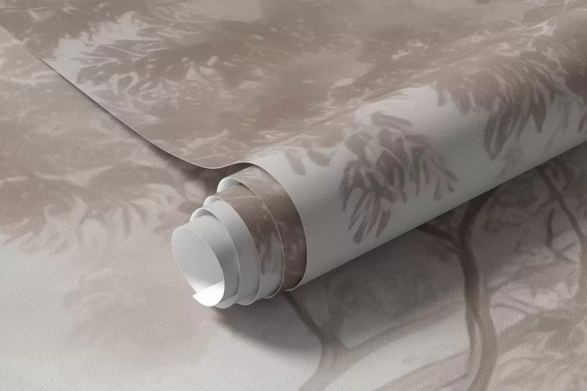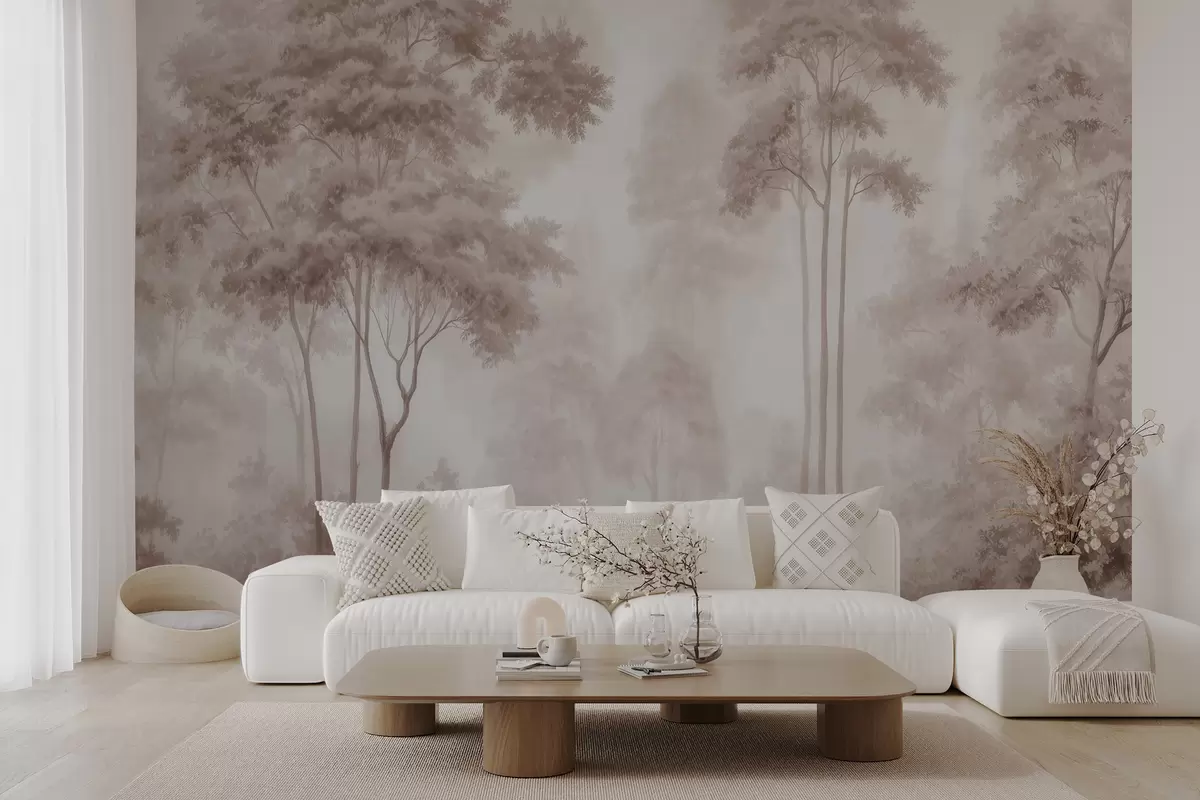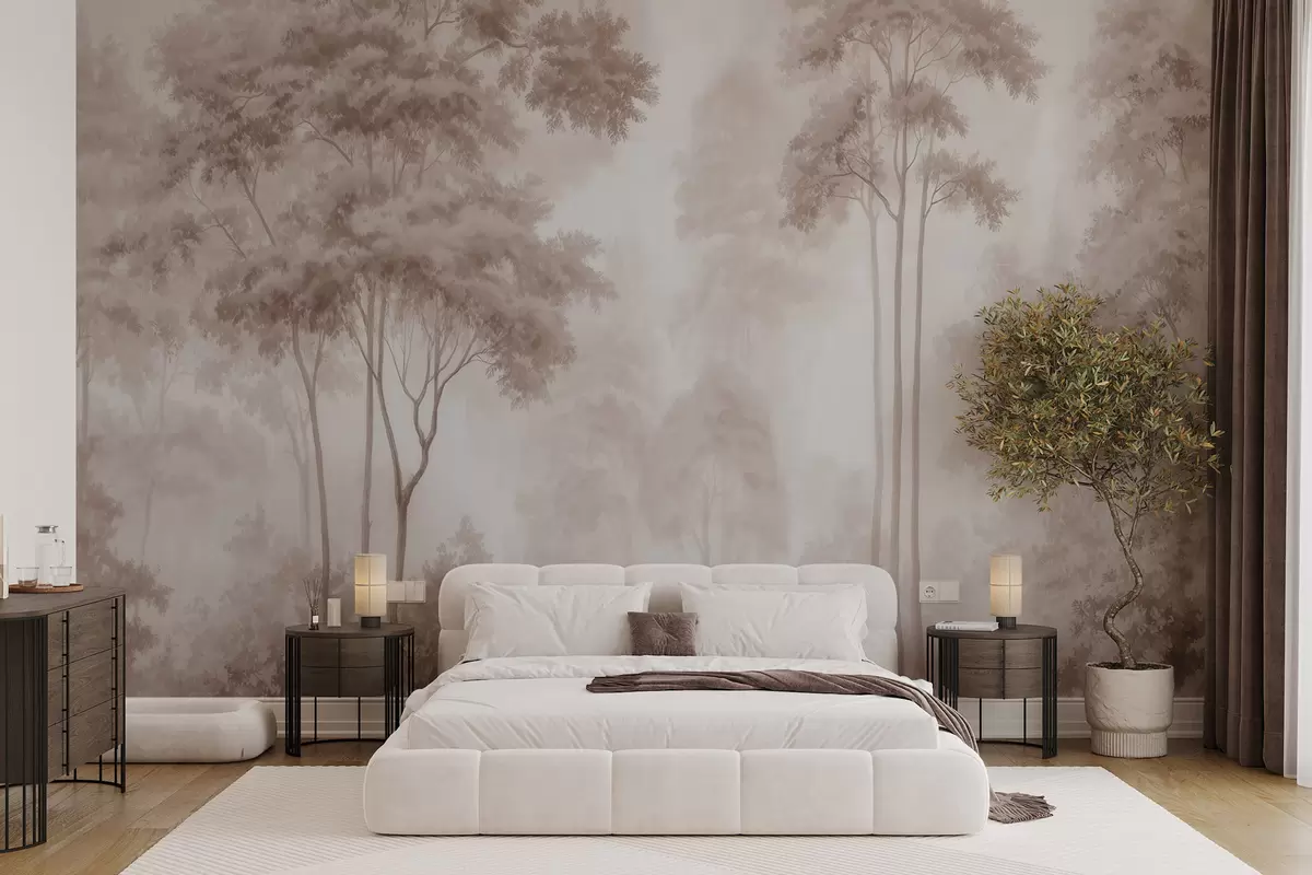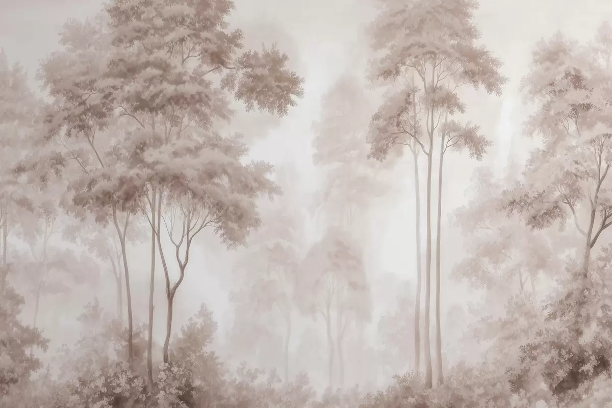 Stenske poslikave Abstraktna gozdna pokrajina v dimastih bež odtenkih z občutkom globine Št. w09657