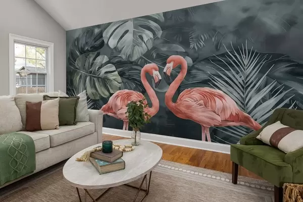 Stenske poslikave Par plamencev med tropskimi rastlinami Št. w09687