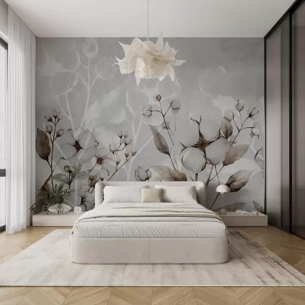 Stenske poslikave Veliki bombažni cvetovi na svetlo sivem ozadju Št. w09691