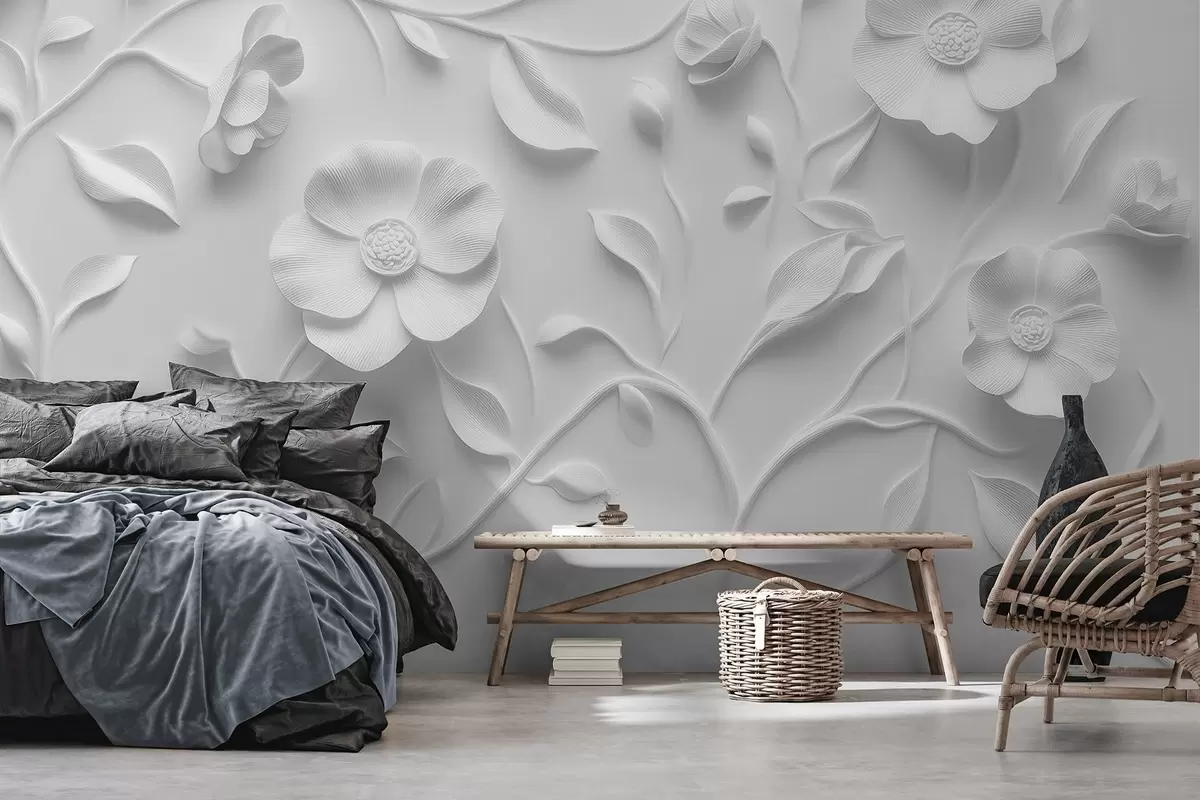 Stenske poslikave Siv reliefni cvetlični ornament Št. w09710