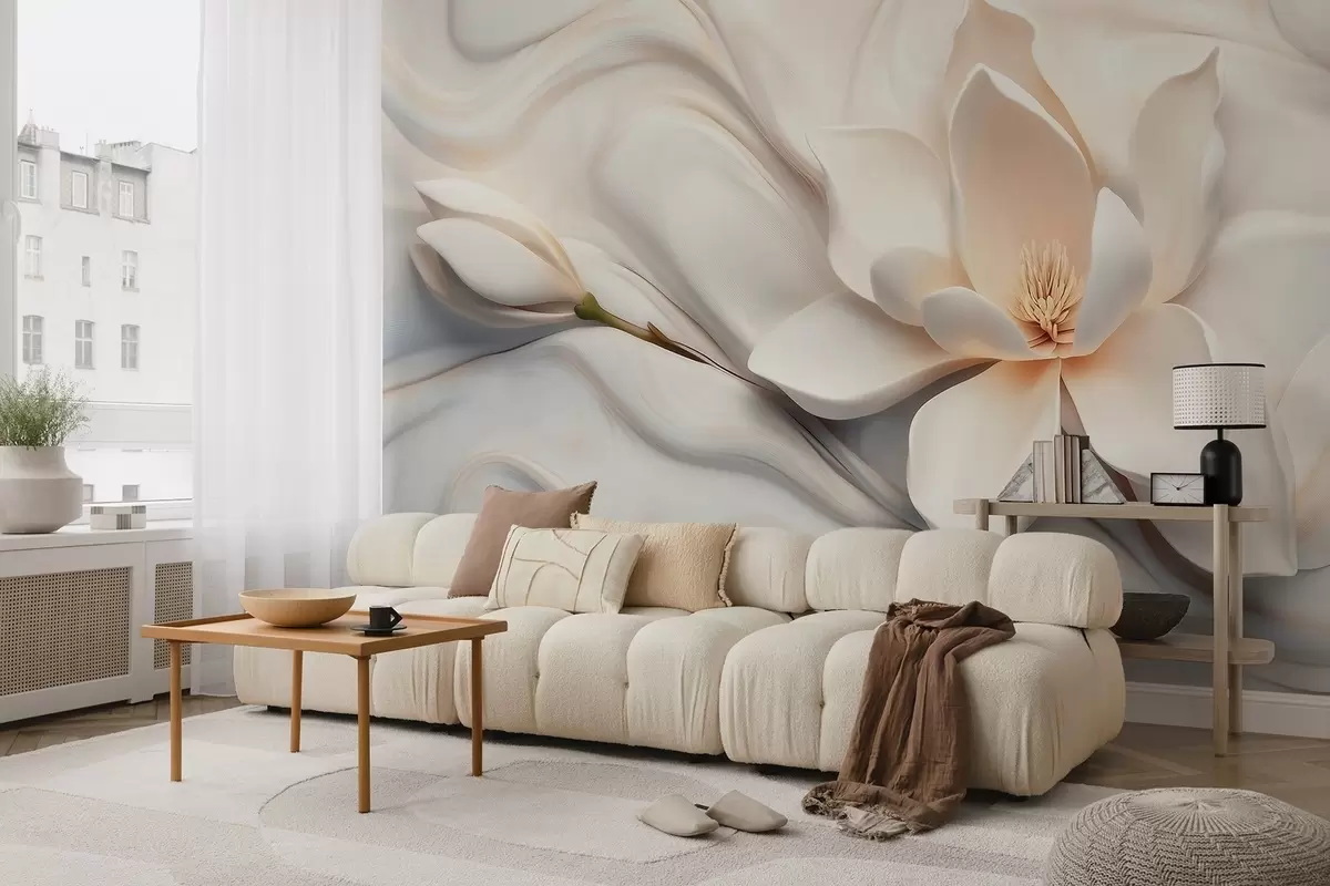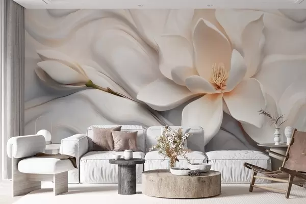 Stenske poslikave Tridimenzionalna bela magnolija z imitacijo marmorne teksture v reliefu Št. w09729