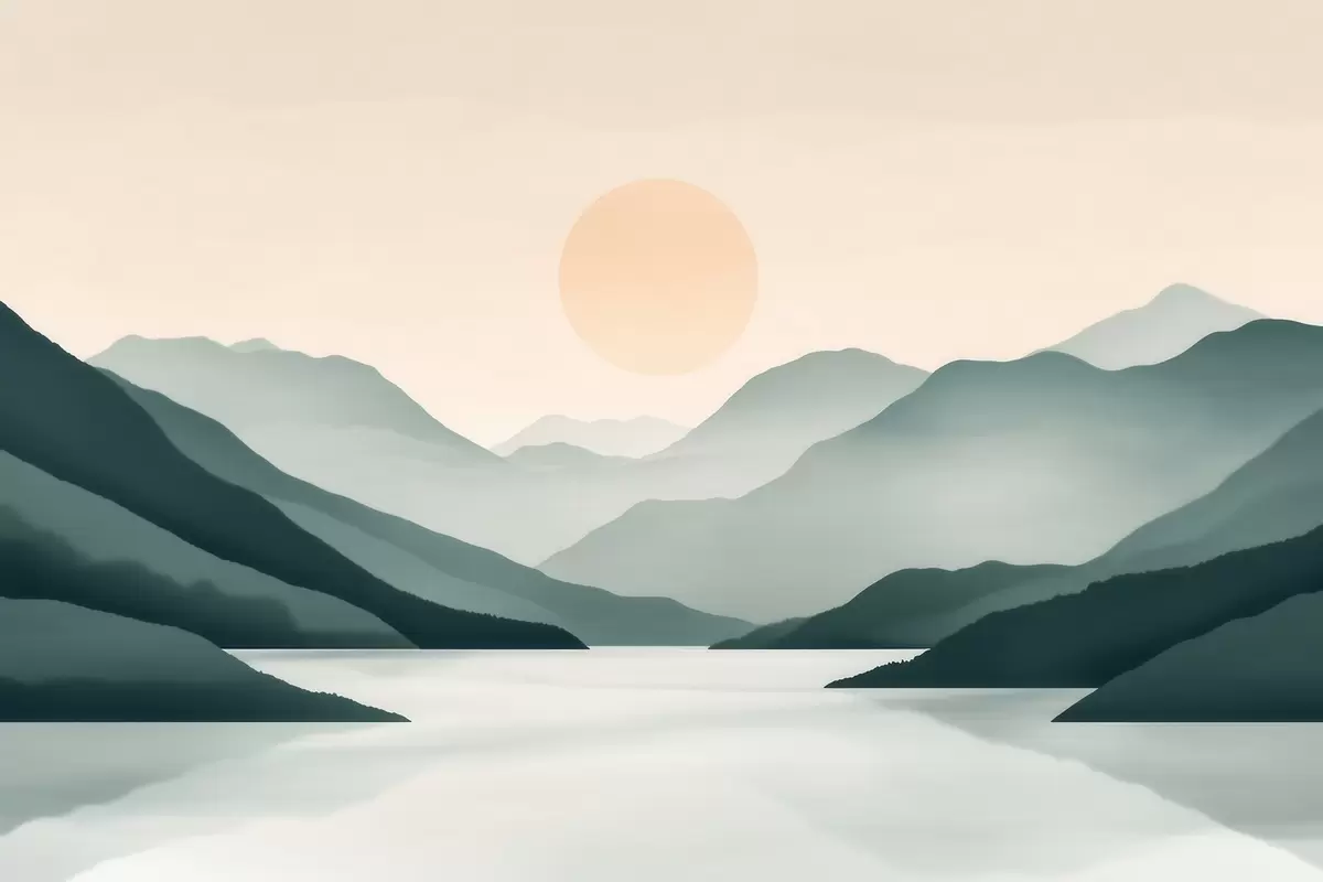 Stenske poslikave Mirna gorska pokrajina s soncem nad jezerom Št. w09735