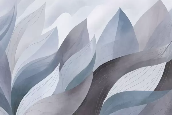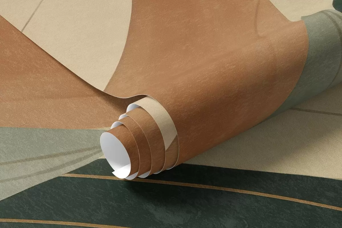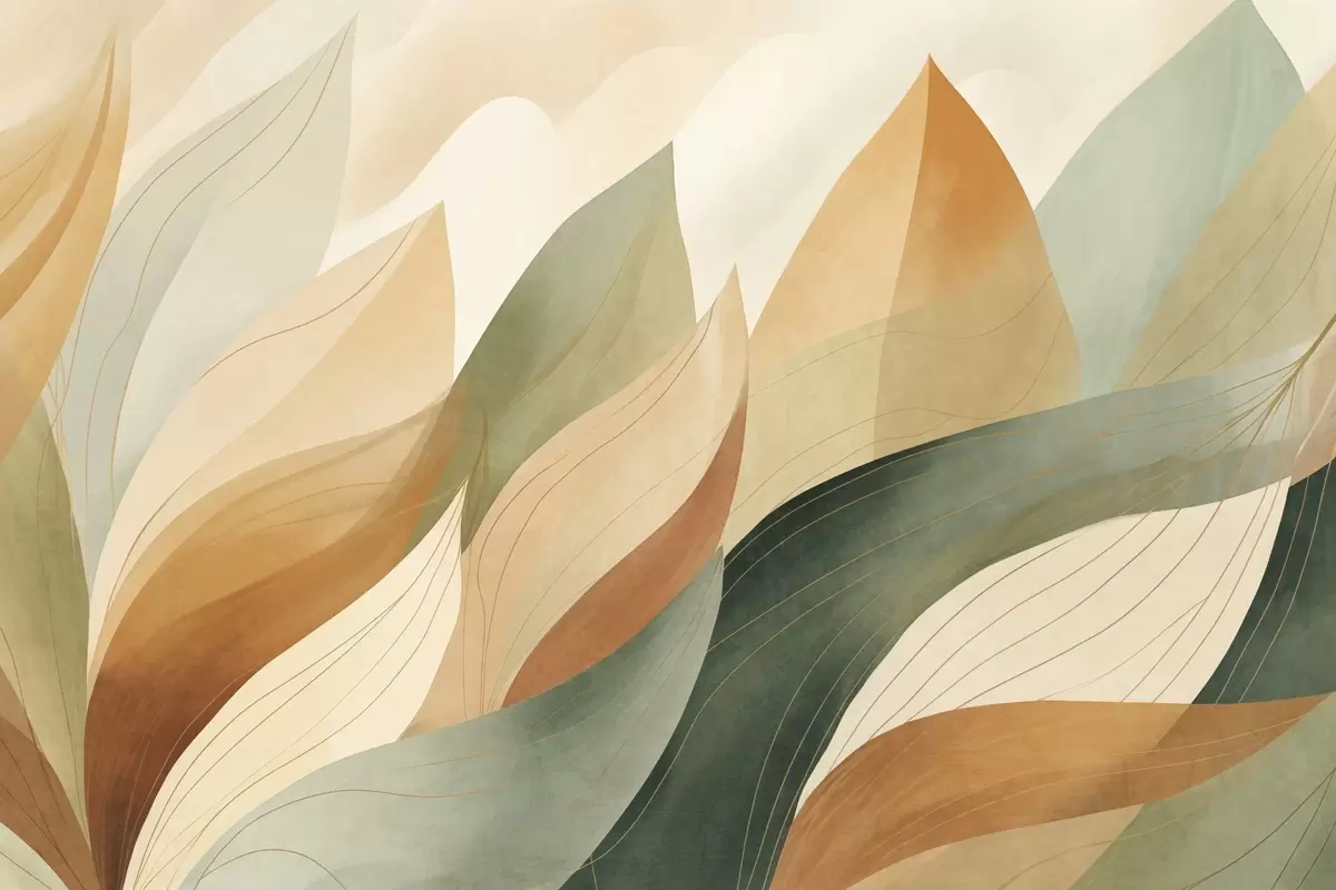 Stenske poslikave Abstraktni listi, pridušeni zemeljski odtenki zelene, oranžne barve z nežnimi detajli črt, mehka akvarelna tekstura Št. w09736
