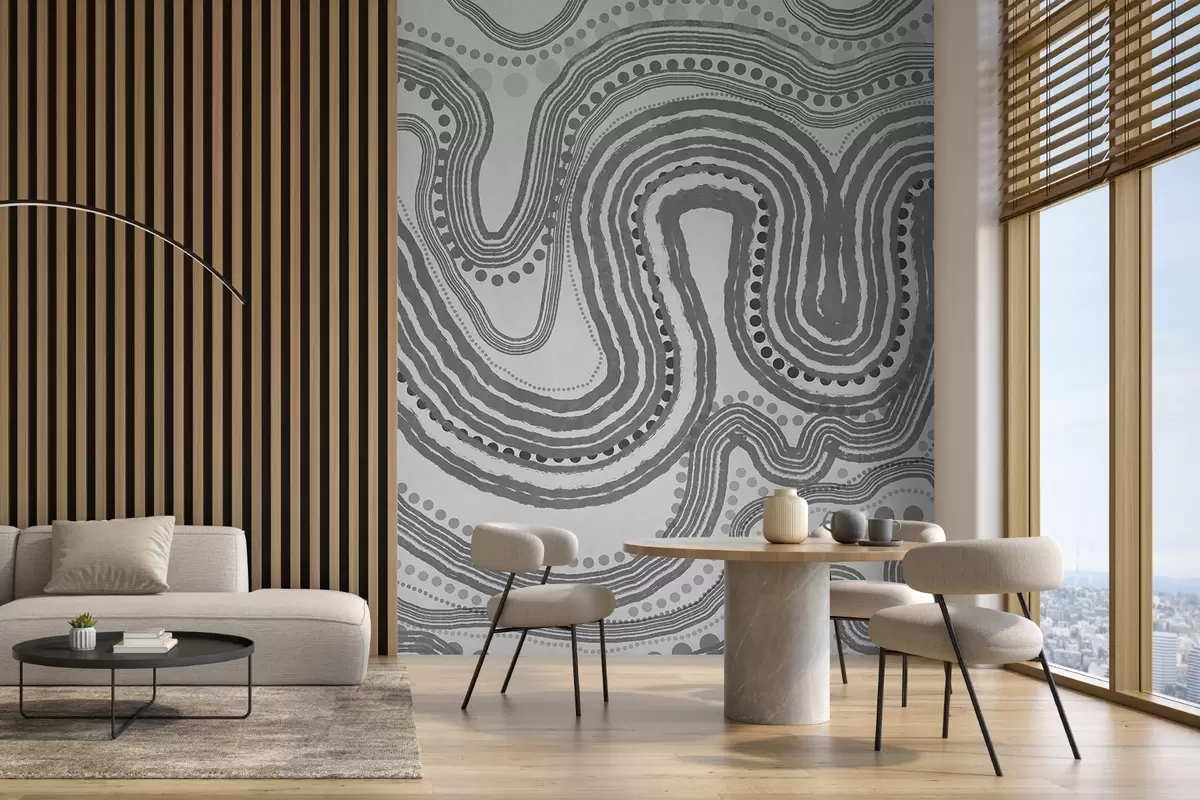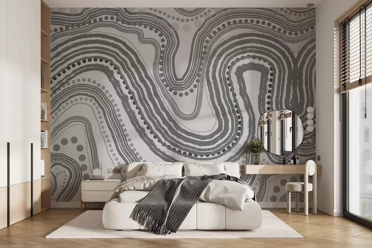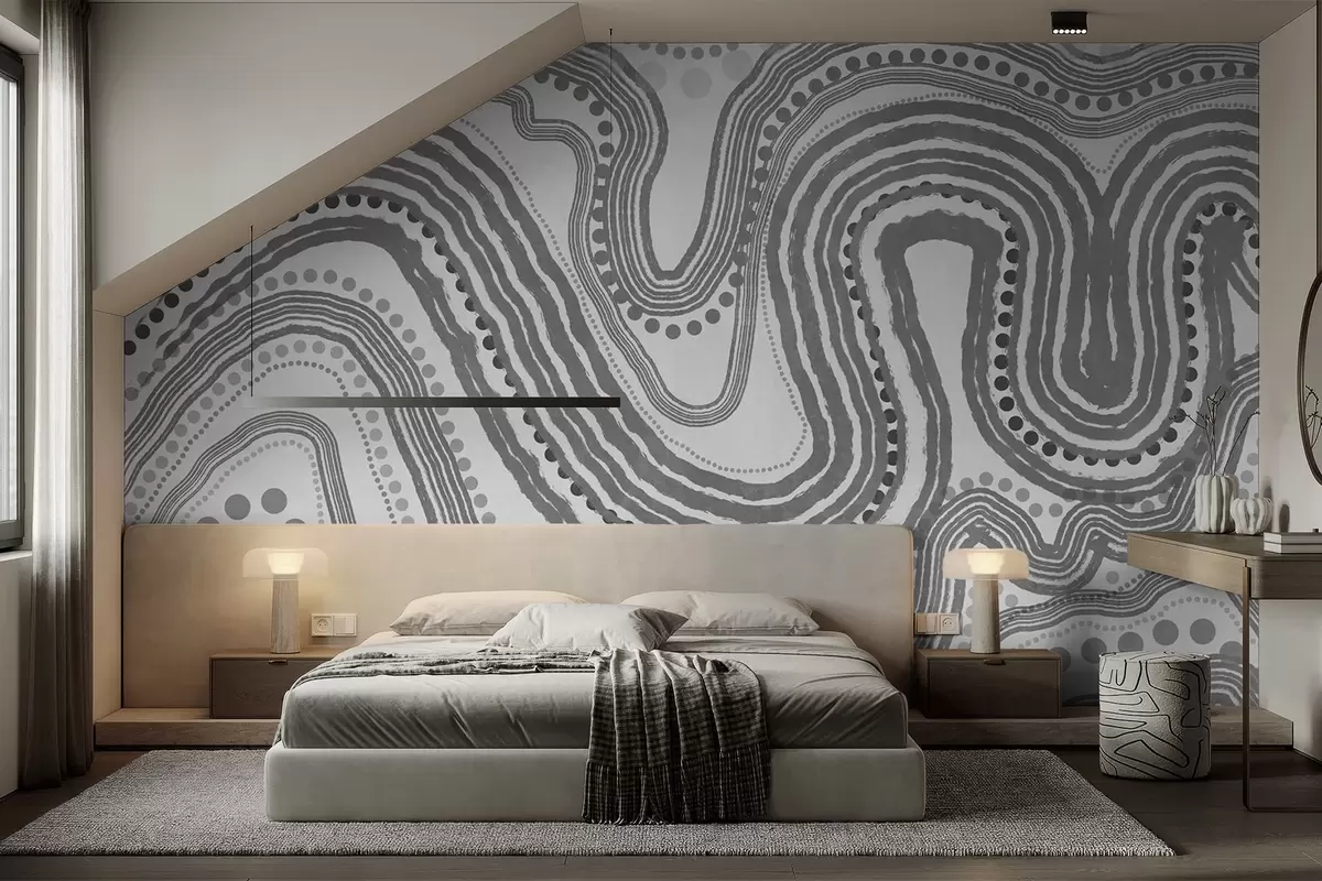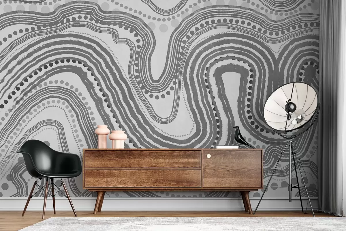 Stenske poslikave Abstraktne temno sive valovite črte in pike, sodobna teksturirana umetnost Št. w09747v2