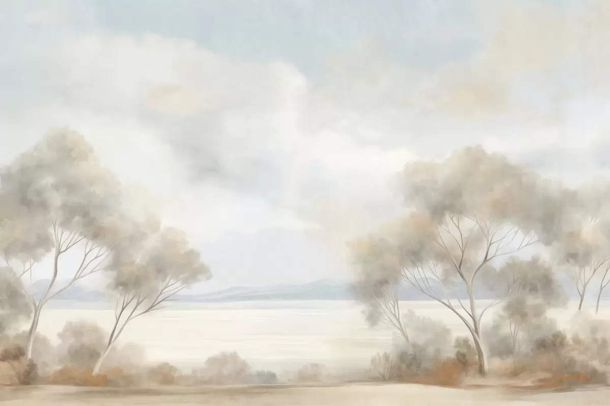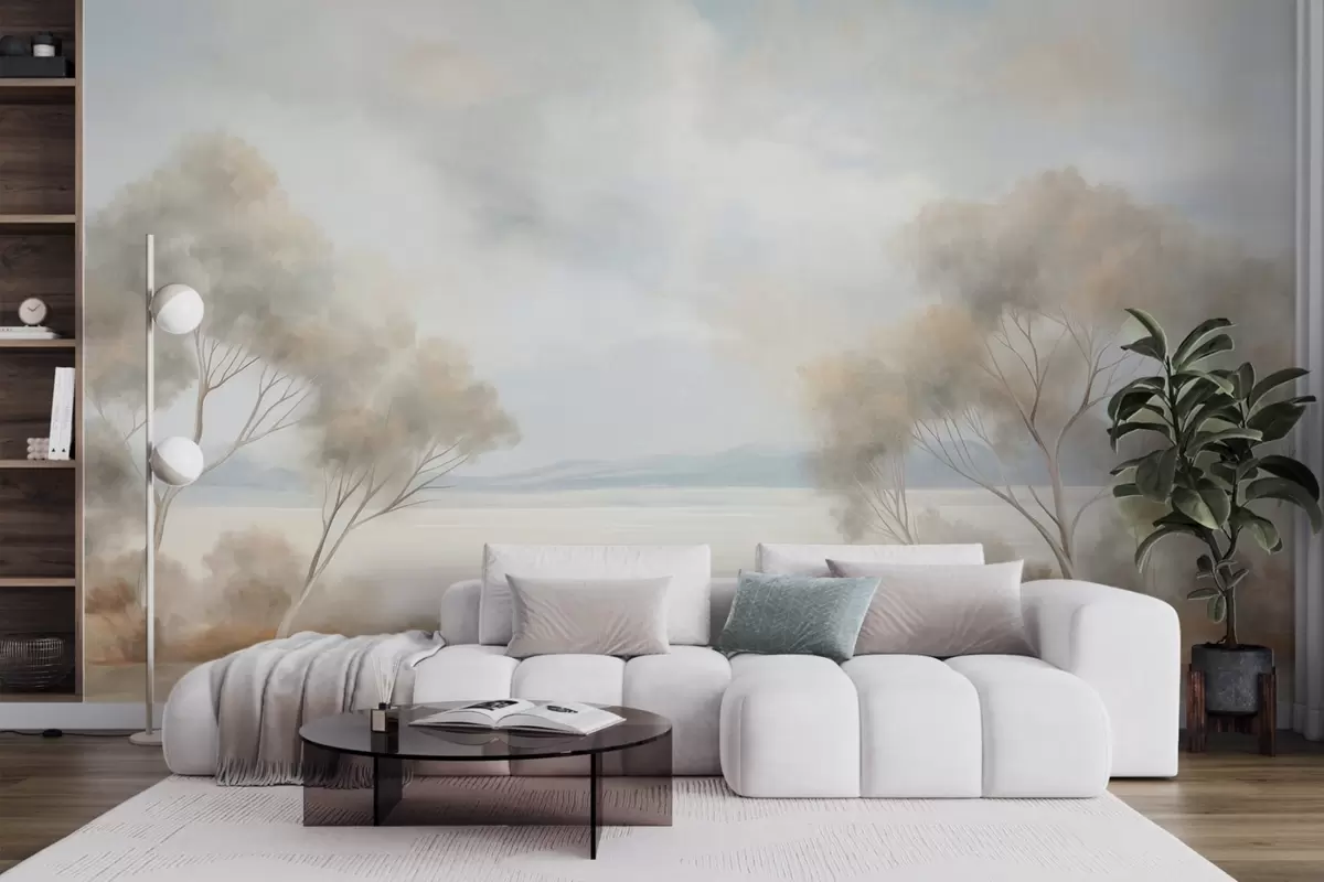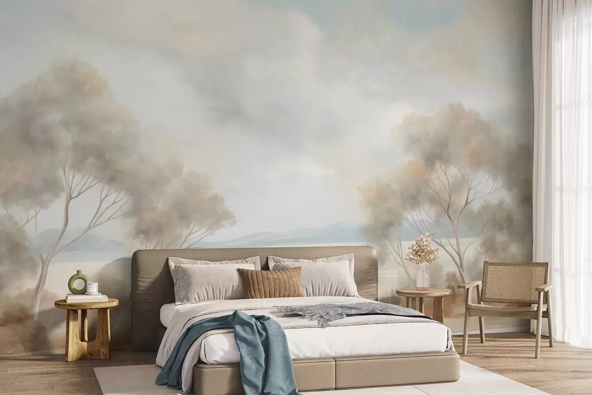 Stenske poslikave Slikarski slog s teksturo pokrajine z drevesi pod oblačnim nebom Št. w09753