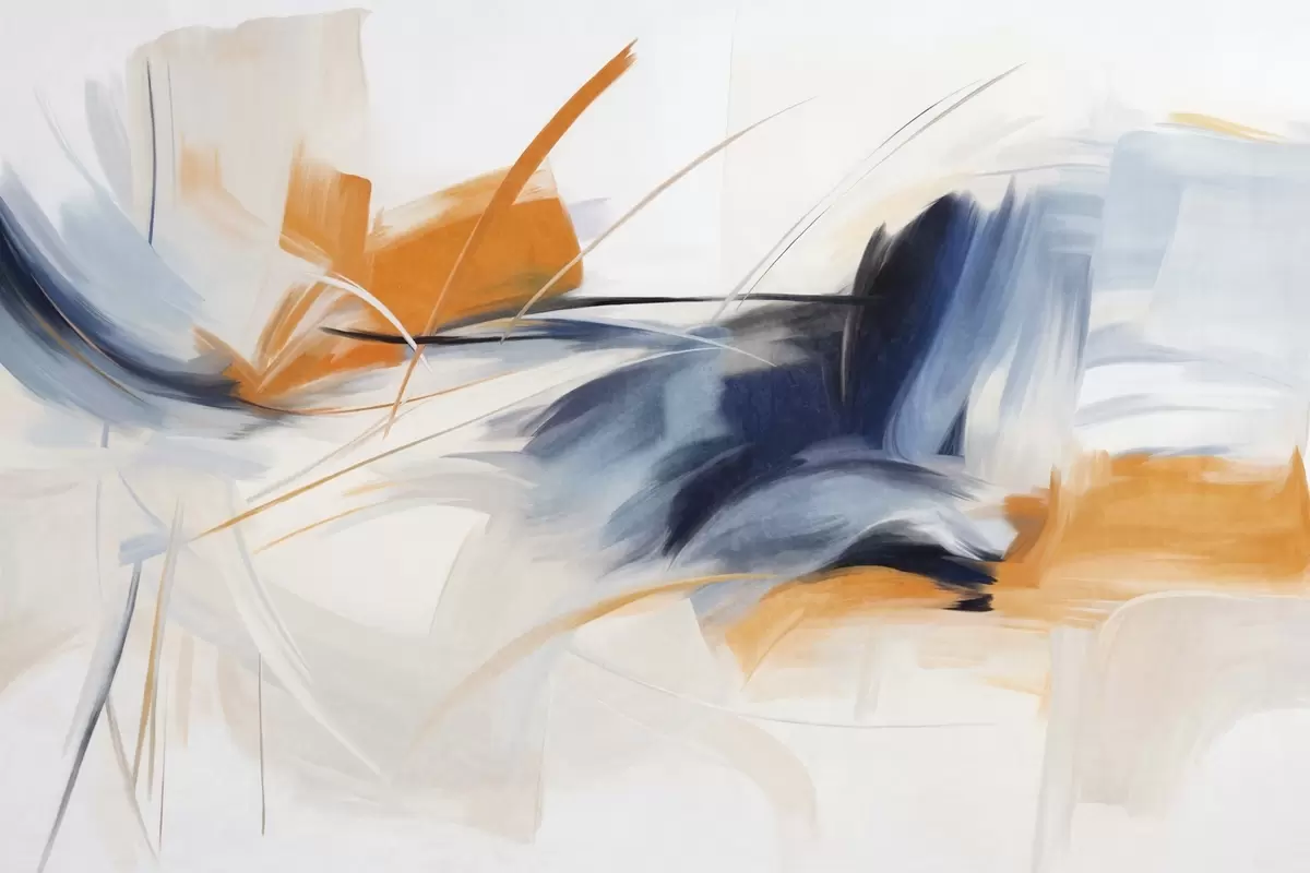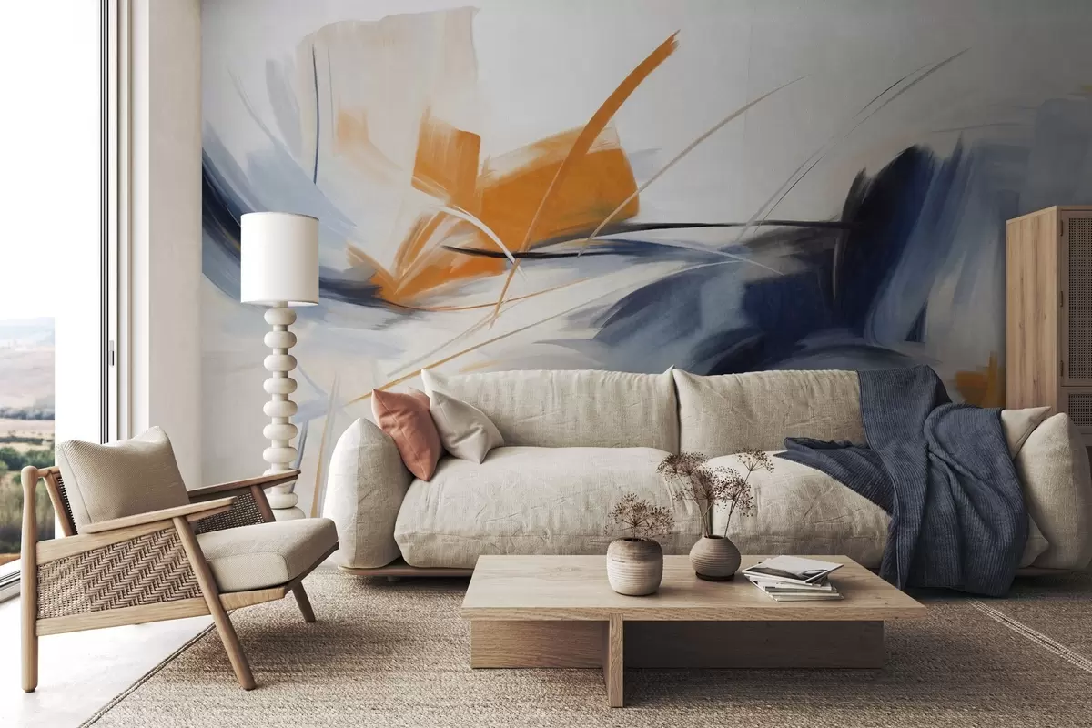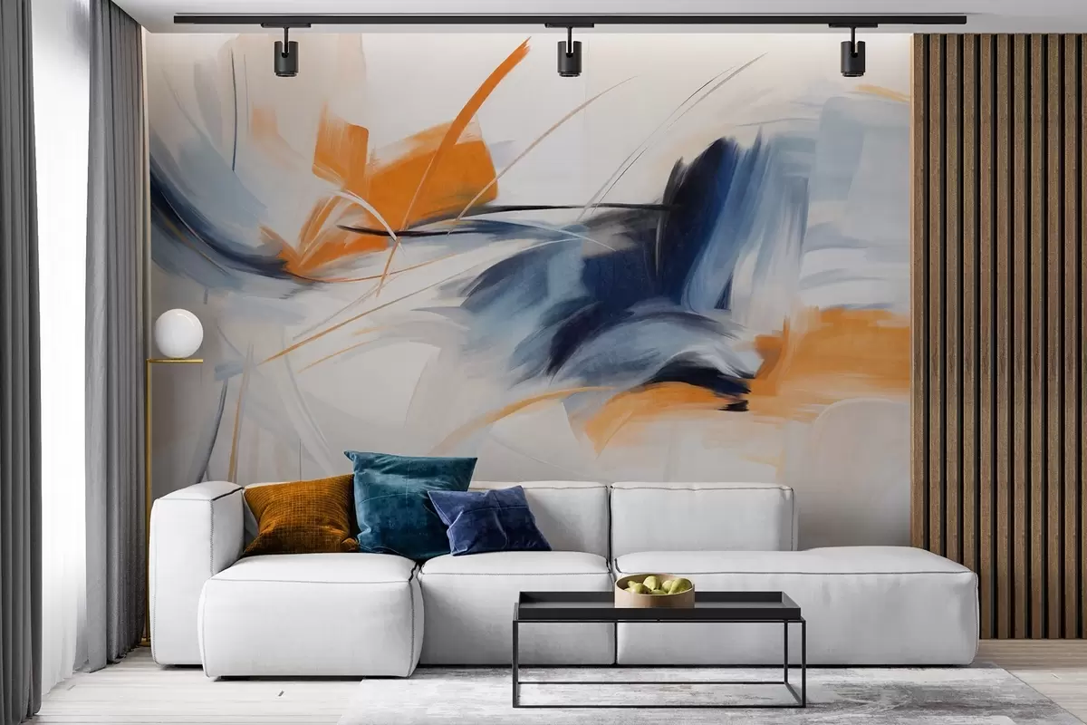 Stenske poslikave Abstraktni slikarski slog z oranžnimi in modrimi teksturiranimi čopičnimi potezami Št. w09755