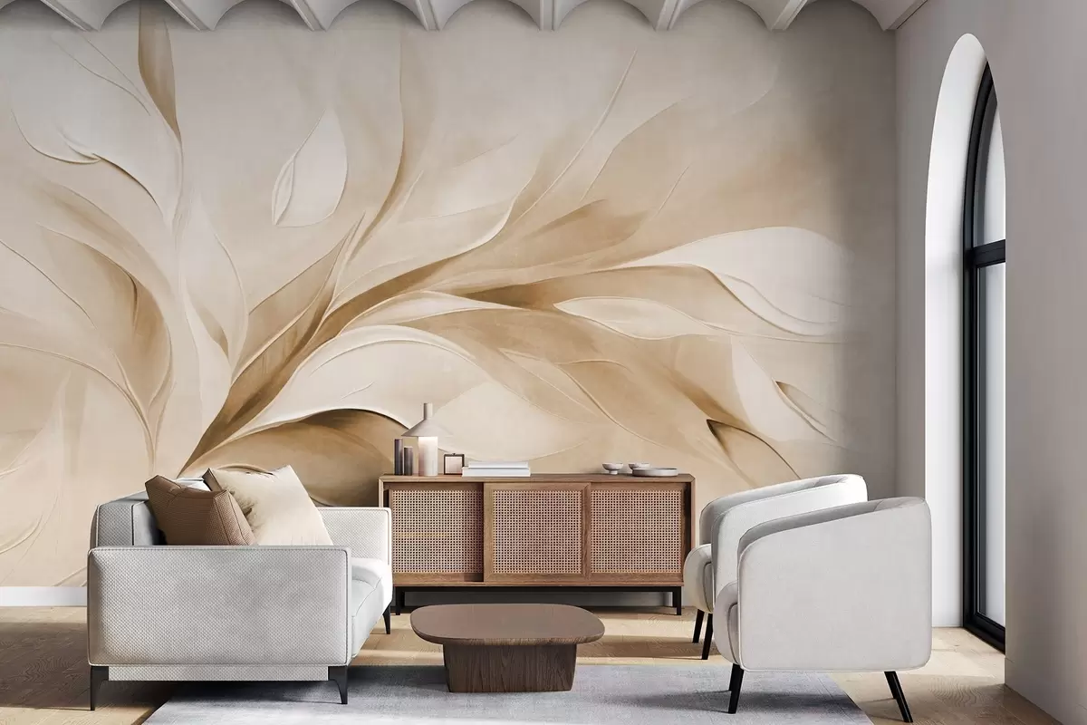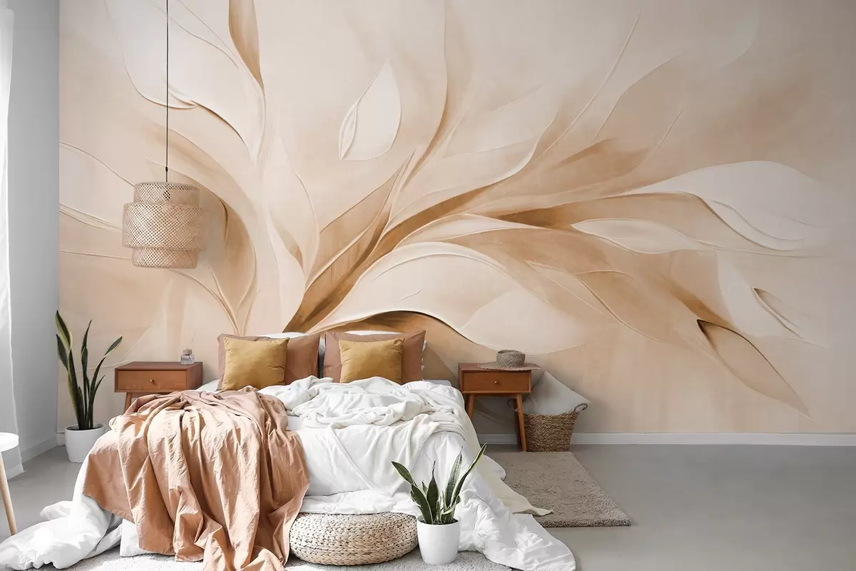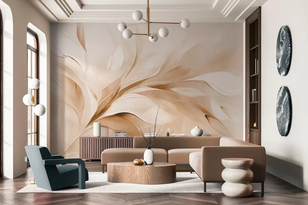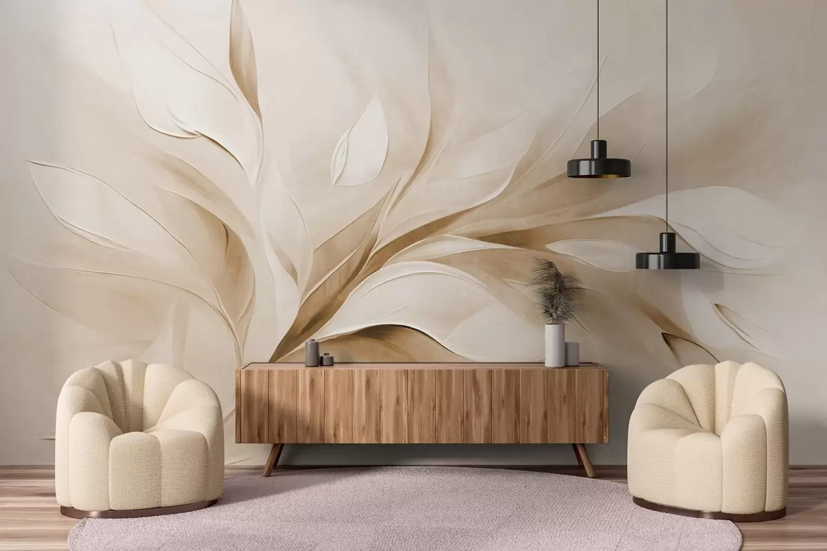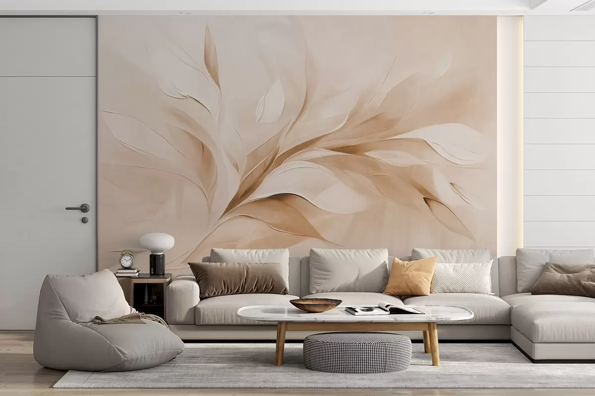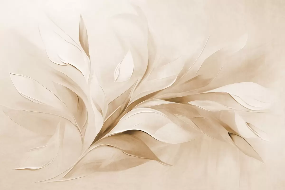 Stenske poslikave Abstraktni slikarski slog z bež in belimi listi v gibanju Št. w09765v1