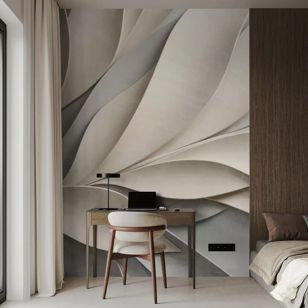 Stenske poslikave Abstraktni listi v bež in sivi barvi, teksturirana sodobna umetnost Št. w09769