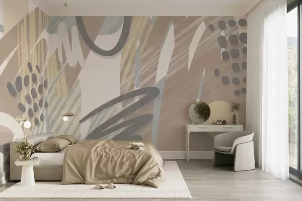 Stenske poslikave Abstraktni vzorec s teksturo, ki ga sestavljajo organske oblike, čačkanja in pikice v nežnih pastelnih barvah Št. w09774