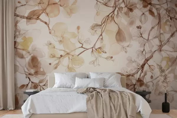Stenske poslikave Zračne viseče veje v bežnih odtenkih v akvarelnem slogu Št. w09795