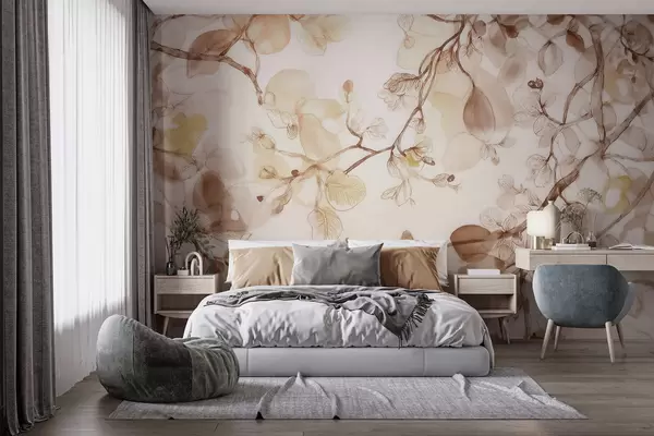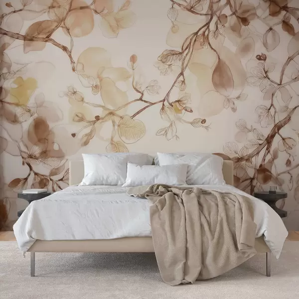 Stenske poslikave Zračne viseče veje v bežnih odtenkih v akvarelnem slogu Št. w09795