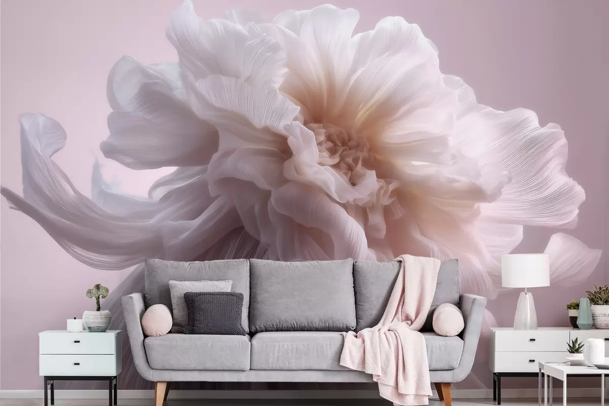 Stenske poslikave Prostorska umetna cvetica v nežnih rožnatih in bež barvah Št. w09809
