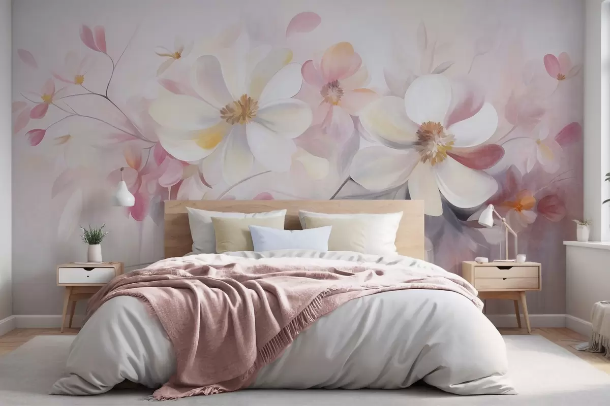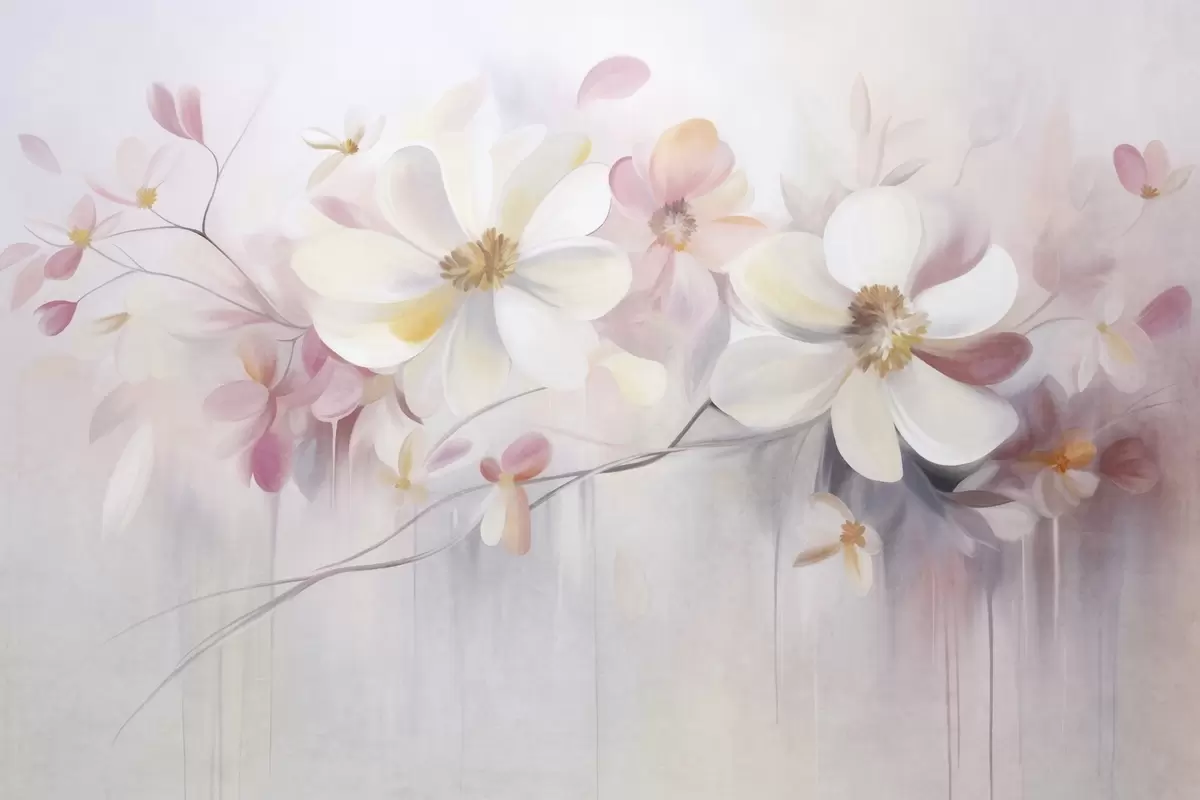 Stenske poslikave Beli in rožnati cvetovi z nežnimi cvetnimi listi na teksturiranem ozadju, abstraktno, mehko ozadje Št. w09811