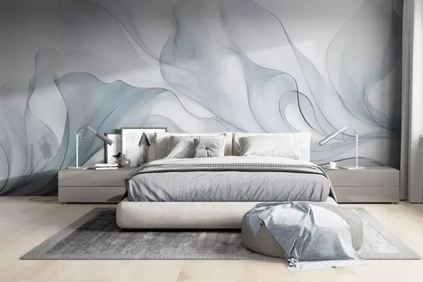 Stenske poslikave Abstraktna, tekoča tekstura v odtenkih modre barve z nežnimi črtami Št. w09815v1